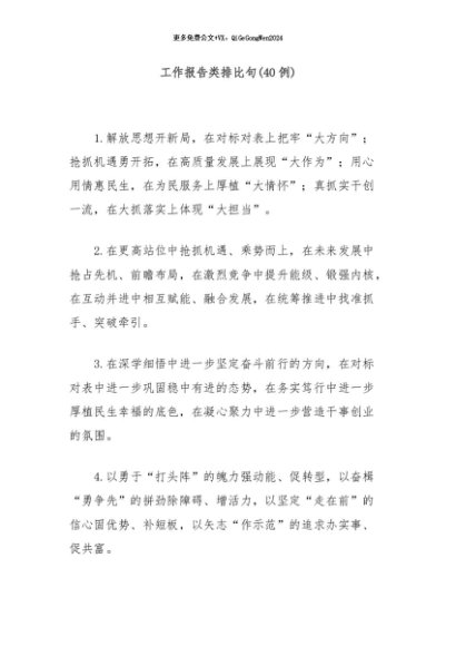 【七哥公文】2025年:(40例)工作报告类排比句+更多免费公文+VX:QiGeGongWen2024