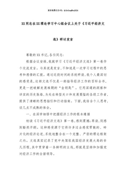 【七哥公文】2025年:XX同志在XX理论学习中心组会议上关于《总书记经济文选》研讨发言+更多免费公文+VX:QiGeGongWen2024