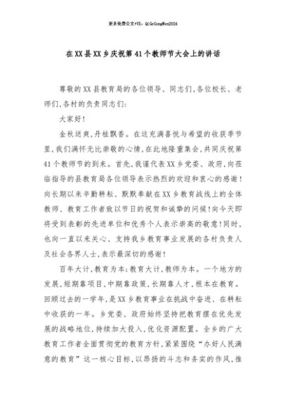 / 【七哥公文】2025年:在XX县XX乡庆祝第41个教师节大会上的讲话+更多免费公文+VX:QiGeGongWen2024