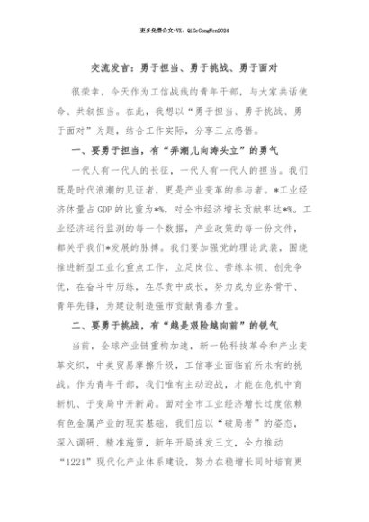 / 【七哥公文】2025年:交流发言:勇于担当、勇于挑战、勇于面对+更多免费公文+VX:QiGeGongWen2024