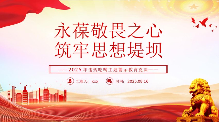 【七哥公文】2025年:2025年违规吃喝主题警示教育党课PPT永葆敬畏之心筑牢思想堤坝课件+更多免费公文+VX:QiGeGongWen2024
