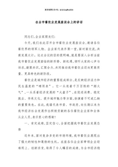 / 【七哥公文】2025年:在全市餐饮业发展座谈会上的讲话+更多免费公文+VX:QiGeGongWen2024