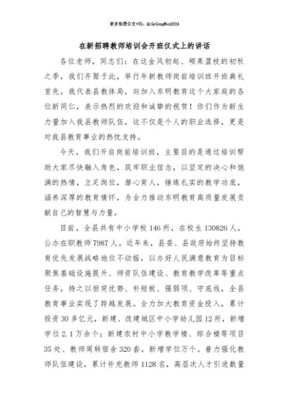 / 【七哥公文】2025年:在新招聘教师培训会开班仪式上的讲话+更多免费公文+VX:QiGeGongWen2024
