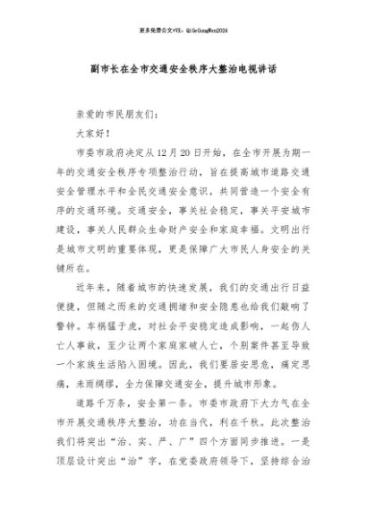 / 【七哥公文】2025年:副市长在全市交通安全秩序大整治电视讲话+更多免费公文+VX:QiGeGongWen2024