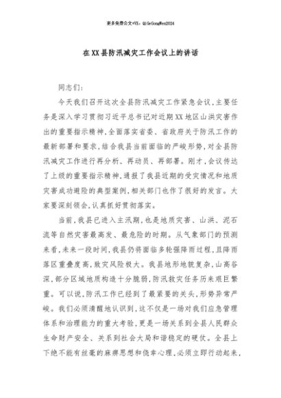 / 【七哥公文】2025年:在XX县防汛减灾工作会议上的讲话+更多免费公文+VX:QiGeGongWen2024