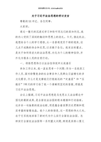 / 【七哥公文】2025年:关于习近平法治思想的研讨发言+更多免费公文+VX:QiGeGongWen2024