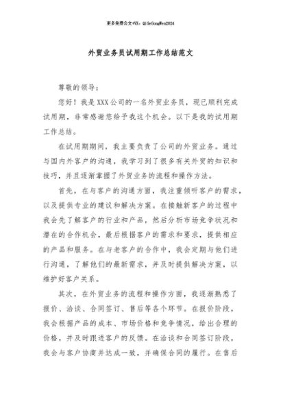 【七哥公文】2025年:外贸业务员试用期工作总结范文+更多免费公文+VX:QiGeGongWen2024