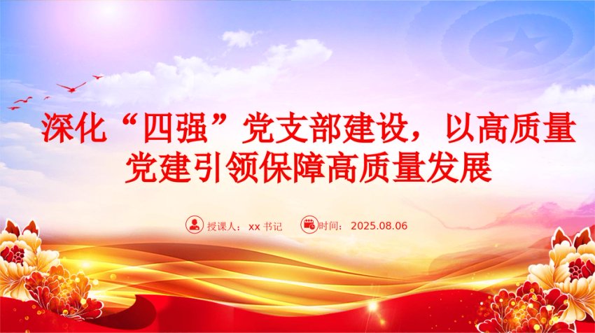 【七哥公文】2025年:党课PPT:深化“四强”党支部建设,以高质量党建引领保障高质量发展+更多免费公文+VX:QiGeGongWen2024