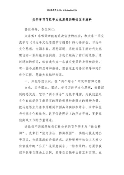 / 【七哥公文】2025年:关于学习习近平文化思想的研讨发言材料+更多免费公文+VX:QiGeGongWen2024