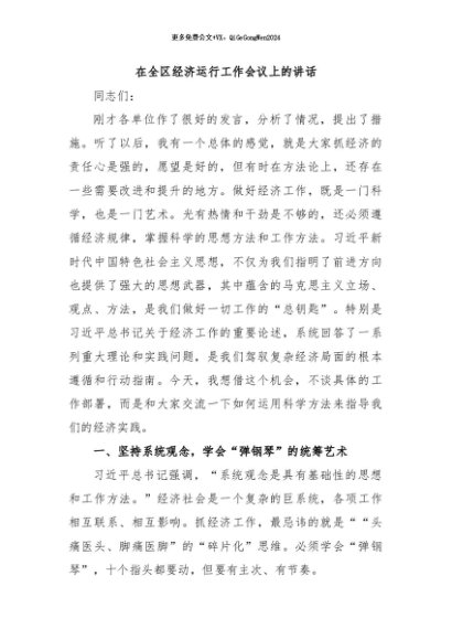 / 【七哥公文】2025年:在全区经济运行工作会议上的讲话+更多免费公文+VX:QiGeGongWen2024