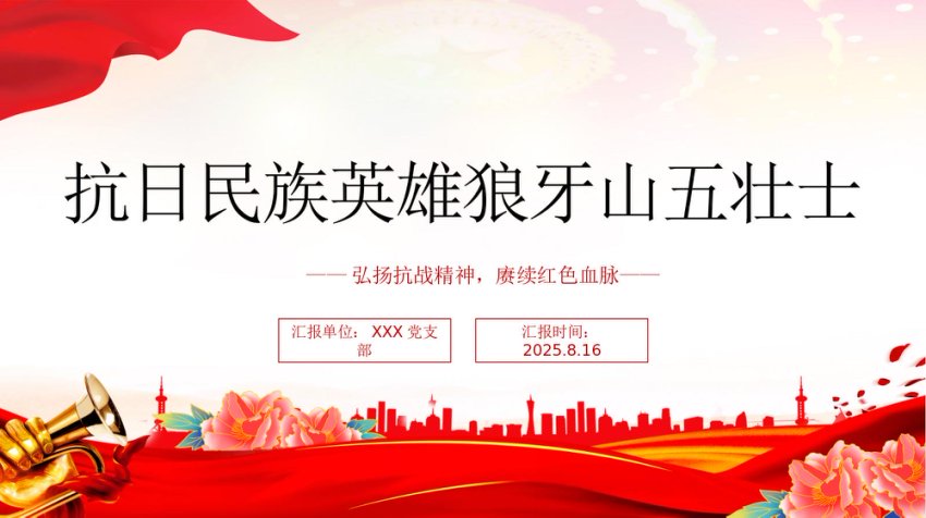 / 【七哥公文】2025年:纪念抗日民族英雄狼牙山五壮士PPT党课课件+更多免费公文+VX:QiGeGongWen2024