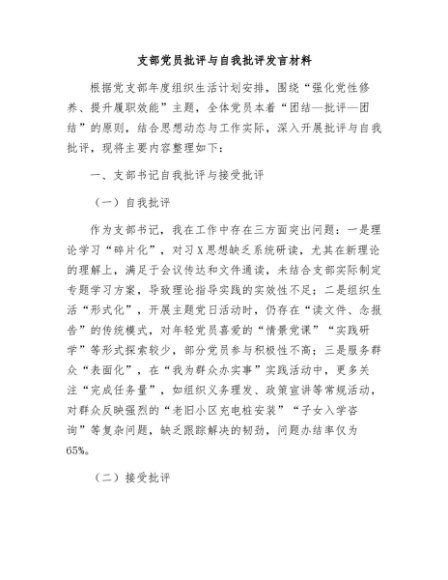 / 【七哥公文】2025年:支部党员批评与自我批评发言材料+更多免费公文+VX:QiGeGongWen2024