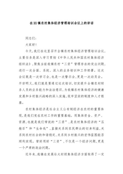 / 【七哥公文】2025年:在XX镇农村集体经济管理培训会议上的讲话+更多免费公文+VX:QiGeGongWen2024