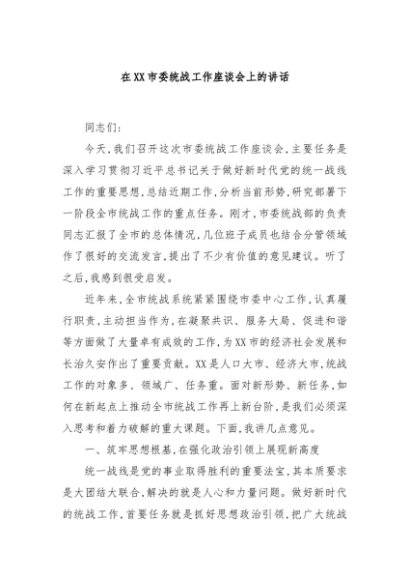/ 【七哥公文】2025年:在XX市委统战工作座谈会上的讲话+更多免费公文+VX:QiGeGongWen2024