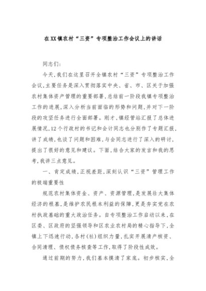 / 【七哥公文】2025年:在XX镇农村“三资”专项整治工作会议上的讲话+更多免费公文+VX:QiGeGongWen2024