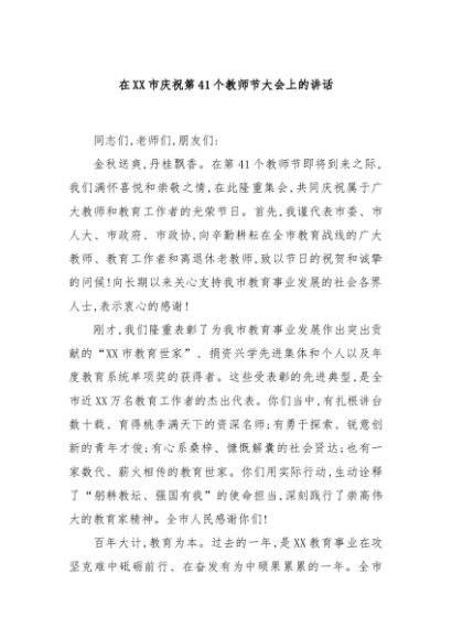 / 【七哥公文】2025年:在XX市庆祝第41个教师节大会上的讲话+更多免费公文+VX:QiGeGongWen2024