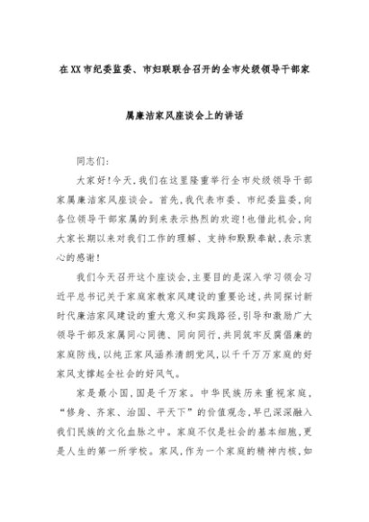 【七哥公文】2025年:在XX市纪委监委、市妇联联合召开的全市处级领导干部家属廉洁家风座谈会上的讲话+更多免费公文+VX:QiGeGongWen2024