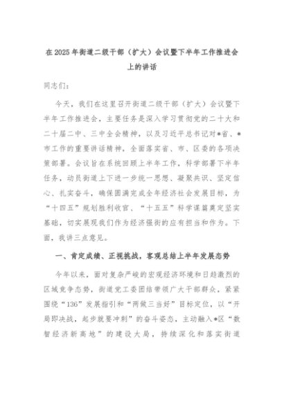 【七哥公文】2025年:在2025年街道二级干部(扩大)会议暨下半年工作推进会上的讲话+更多免费公文+VX:QiGeGongWen2024