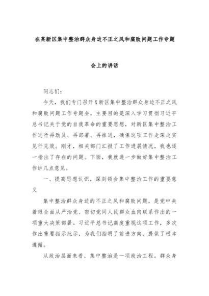 【七哥公文】2025年:在某新区集中整治群众身边不正之风和腐败问题工作专题会上的讲话+更多免费公文+VX:QiGeGongWen2024