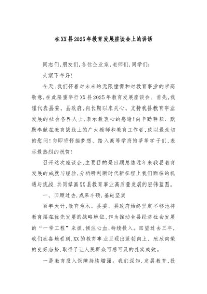 / 【七哥公文】2025年:在XX县2025年教育发展座谈会上的讲话+更多免费公文+VX:QiGeGongWen2024