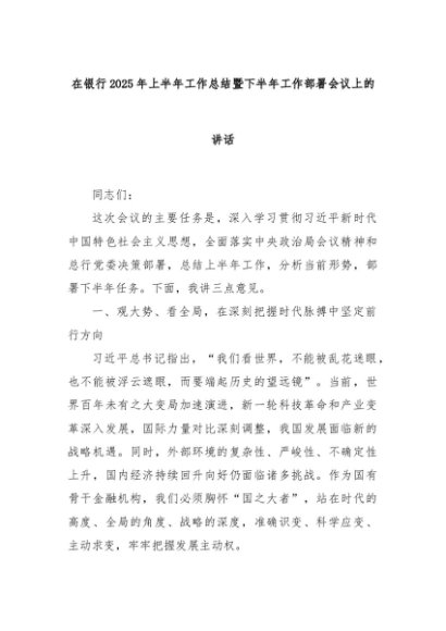 【七哥公文】2025年:在银行2025年上半年工作总结暨下半年工作部署会议上的讲话+更多免费公文+VX:QiGeGongWen2024