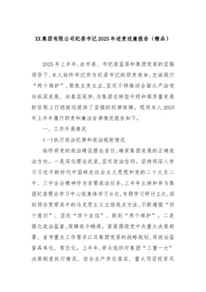 【七哥公文】2025年:XX集团有限公司纪委书记2025年述责述廉报告(精品)+更多免费公文+VX:QiGeGongWen2024