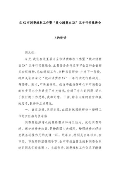 【七哥公文】2025年:在XX市消费维权工作暨“放心消费在XX”三年行动推进会上的讲话+更多免费公文+VX:QiGeGongWen2024