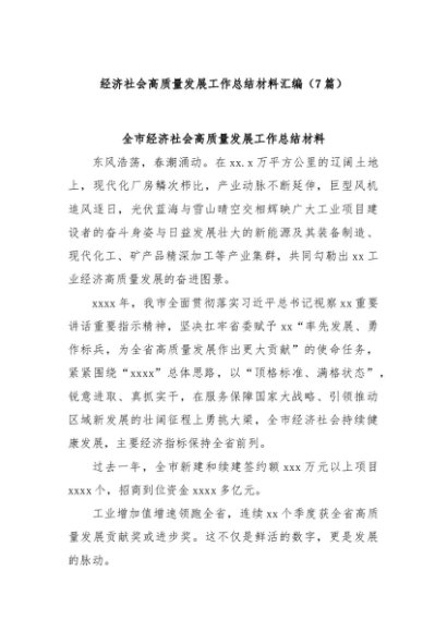 / 【七哥公文】2025年:(7篇)经济社会高质量发展工作总结材料汇编+更多免费公文+VX:QiGeGongWen2024
