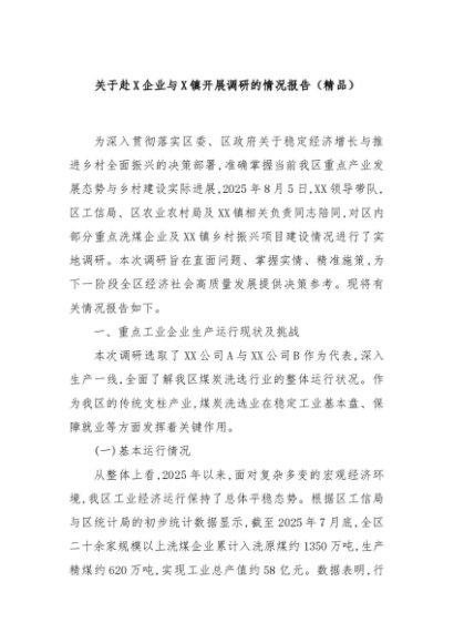 / 【七哥公文】2025年:关于赴X企业与X镇开展调研的情况报告(精品)+更多免费公文+VX:QiGeGongWen2024