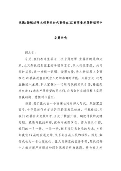 【七哥公文】2025年:党课:锤炼过硬本领勇担时代重任在XX高质量发展新征程中奋勇争先+更多免费公文+VX:QiGeGongWen2024