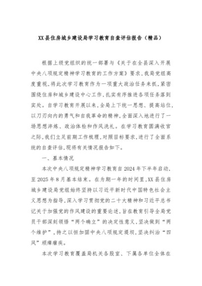 / 【七哥公文】2025年:XX县住房城乡建设局学习教育自查评估报告(精品)+更多免费公文+VX:QiGeGongWen2024