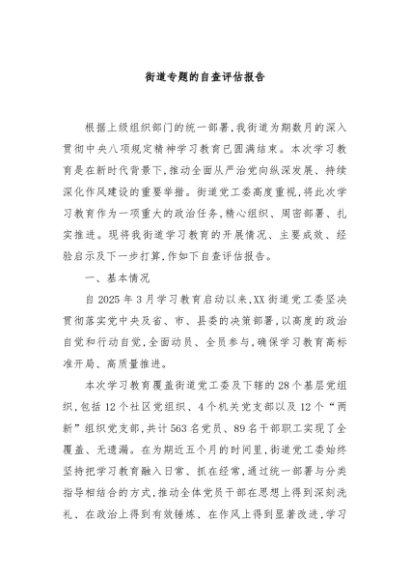 / 【七哥公文】2025年:街道专题的自查评估报告+更多免费公文+VX:QiGeGongWen2024