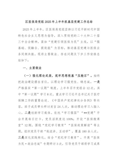 / 【七哥公文】2025年:区医保局党组2025年上半年抓基层党建工作总结+更多免费公文+VX:QiGeGongWen2024