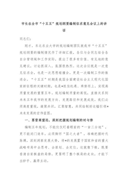 【七哥公文】2025年:市长在全市“十五五”规划纲要编制征求意见会议上的讲话+更多免费公文+VX:QiGeGongWen2024