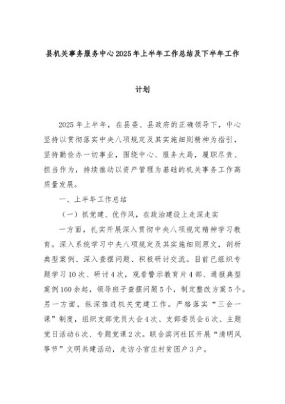 【七哥公文】2025年:县机关事务服务中心2025年上半年工作总结及下半年工作计划+更多免费公文+VX:QiGeGongWen2024