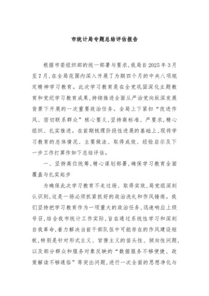 / 【七哥公文】2025年:市统计局专题总结评估报告+更多免费公文+VX:QiGeGongWen2024