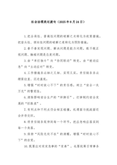 / 【七哥公文】2025年:社会治理类过渡句(2025年8月24日)+更多免费公文+VX:QiGeGongWen2024