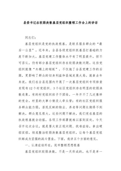 / 【七哥公文】2025年:县委书记在软弱涣散基层党组织整顿工作会上的讲话+更多免费公文+VX:QiGeGongWen2024
