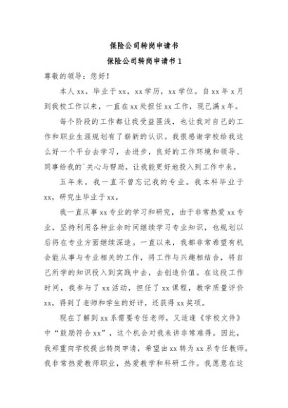/ 【七哥公文】2025年:保险公司转岗申请书+更多免费公文+VX:QiGeGongWen2024