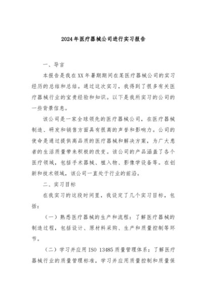 / 【七哥公文】2025年:2025年医疗器械公司进行实习报告+更多免费公文+VX:QiGeGongWen2024