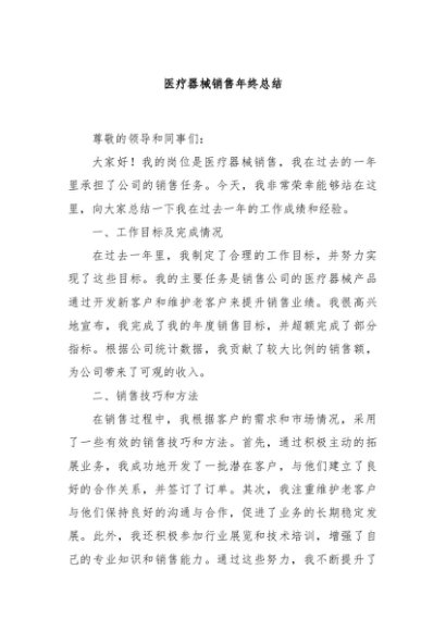 / 【七哥公文】2025年:医疗器械销售年终总结+更多免费公文+VX:QiGeGongWen2024