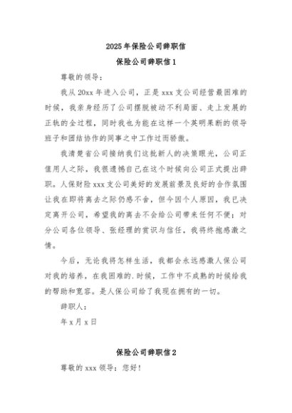 / 【七哥公文】2025年:2025年保险公司辞职信+更多免费公文+VX:QiGeGongWen2024