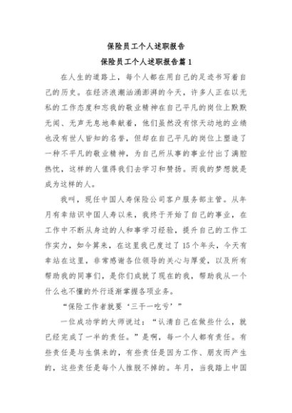 / 【七哥公文】2025年:保险员工个人述职报告+更多免费公文+VX:QiGeGongWen2024
