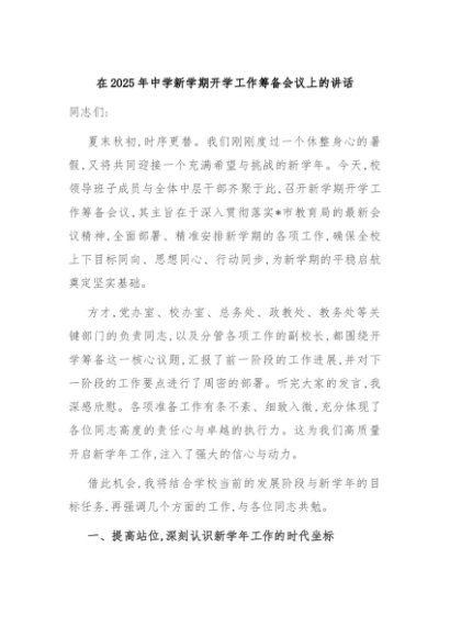 / 【七哥公文】2025年:在2025年中学新学期开学工作筹备会议上的讲话+更多免费公文+VX:QiGeGongWen2024
