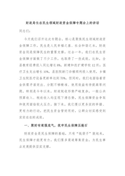 / 【七哥公文】2025年:财政局长在民生领域财政资金保障专题会上的讲话+更多免费公文+VX:QiGeGongWen2024