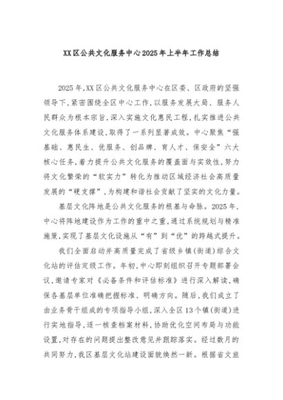 / 【七哥公文】2025年:XX区公共文化服务中心2025年上半年工作总结+更多免费公文+VX:QiGeGongWen2024