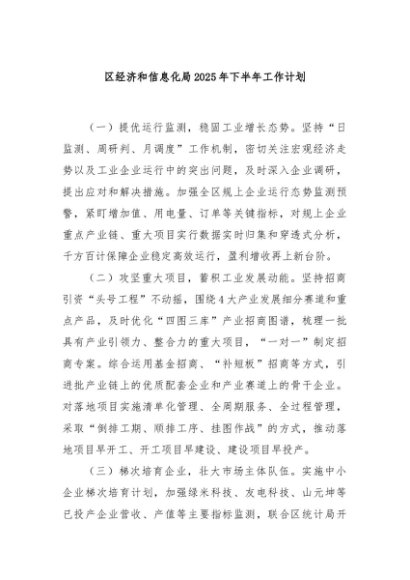 / 【七哥公文】2025年:区经济和信息化局2025年下半年工作计划+更多免费公文+VX:QiGeGongWen2024