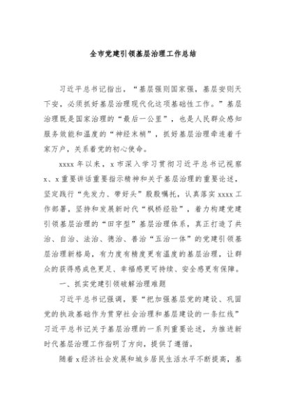 / 【七哥公文】2025年:全市党建引领基层治理工作总结+更多免费公文+VX:QiGeGongWen2024