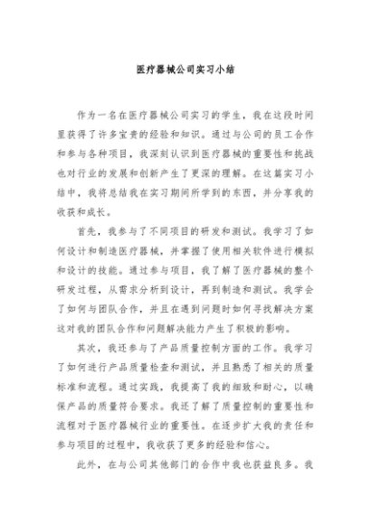 【七哥公文】2025年:医疗器械公司实习小结+更多免费公文+VX:QiGeGongWen2024