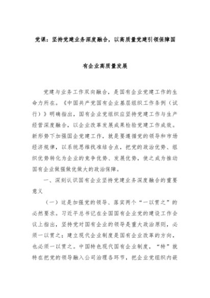 【七哥公文】2025年:党课:坚持党建业务深度融合,以高质量党建引领保障国有企业高质量发展+更多免费公文+VX:QiGeGongWen2024